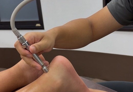 シンスプリントの治療、筋膜へのアプローチでは、霧島市の整骨院では希少な≪メディセル≫を使用した筋膜リリースが有効です。筋膜の癒着を優しくはがしながらスネの内側の筋膜など通常の手技では痛くて施術が出来ない部位も可能です。足首可動域も改善します。